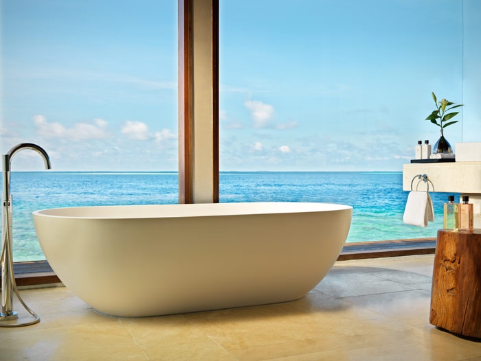 14 Ocean Revives/Sunset (270 кв. м) – состоит из спальни с кроватью king-size, гостиной, столовой, гардеробной, кабинета, ванной комнаты с душевой кабиной, гостевого туалета, террасы с персональным бассейном, круглой ванной на открытом воздухе, террасы-солярия с лежаками и спуском в воды лагуны, массажного павильона. Расположены на сваях в водах лагуны. Панорамный вид на океан. Макс. размещение - 2 взрослых и 1 ребенок до 12 лет