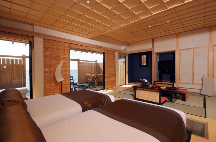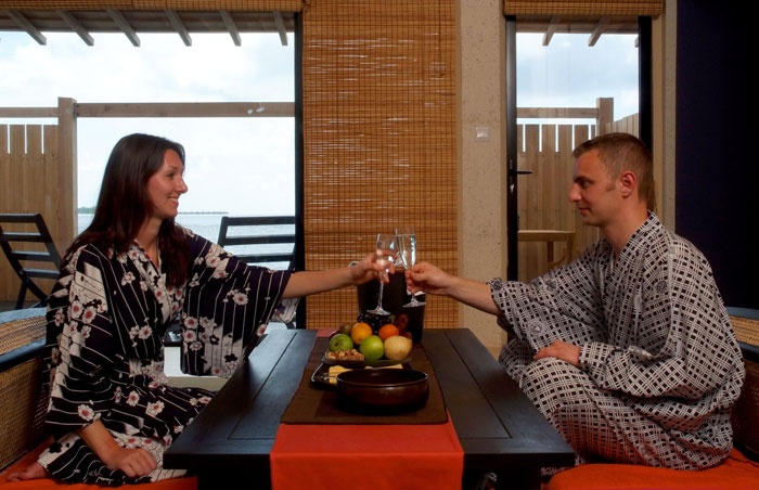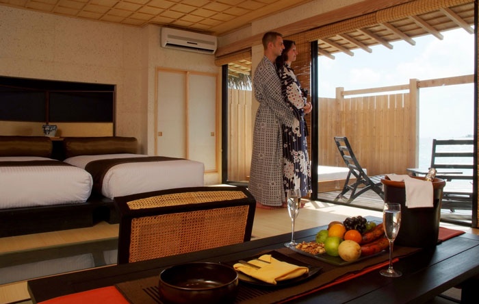 В отеле 50 водных вилл (из них 6 номеров в японском стиле) следующих категорий: