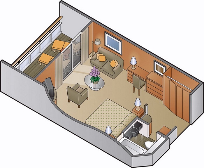 Deluxe Balcony Stateroom категории: 2A площадь: 16 кв.м. / 4 кв.м.