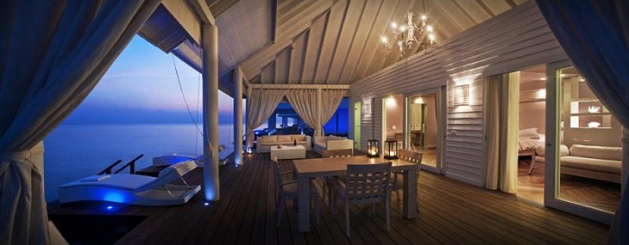 25 Water Villas (15 Lagoon View Villas и 10 Sunset View Villas) - частная большая терраса с прямым доступом к воде. Достаточно большая жилая площадь включает изготовленную на заказ мебель из ротанговой пальмы, итальянское современное освещение и инкрустированные деревянные паркетные полы ручной работы. Кровать королевских размеров с балдахином, диван-кровать. В ванной комнате - косметическое зеркало, банные халаты, туалетные принадлежности, двойная раковина.
