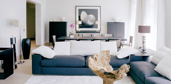 Apartment 8 (170 кв. м) - расположен на 3 этаже, включает: гостиную, офис с мультимедийным оборудованием, системой Wi-Fi и принтером, столовую (61 кв. м), оборудованную кухню Varenna, выходящую в столовую и гостиную, 2 спальни, 2 ванные комнаты, дополнительную туалетную комнату.