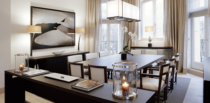 Apartment 5 (150 кв. м) - расположен на 2 этаже, выходит на Эйфелеву башню, включает: гостиную, офис с мультимедийным оборудованием, системой Wi-Fi и принтером, столовую (70 кв.м.), оборудованную кухню Varenna, выходящую в столовую и гостиную, 2 спальни, 2 ванные комнаты, дополнительную туалетную комнату.