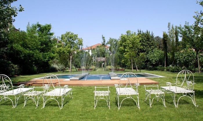 Opale ("Опал" - 70 кв.м.) - просторный однокомнатный номер, включающий спальню с камином и баром, персональная ванная комната, вид на сад. Западная сторона.