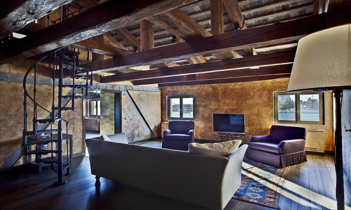Perla* ("Жемчужина" - 150 кв.м.) - в состав апартаментов входит семейная спальня и комната для гостей, каждая со своей персональной ванной, гостиная выходит на северо-запад на лагуну и Сан-Марко, дизайнерская кухня с винным шкафом. Север/Запад/Восток.