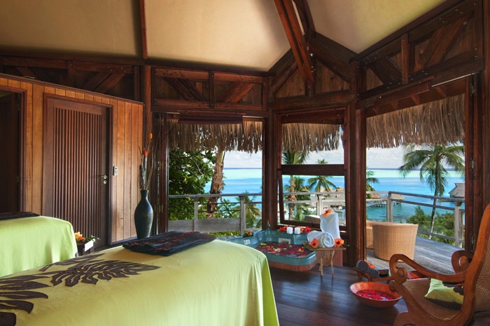 5 бунгало для процедур с джакузи и полностью оборудованными ванными комнатами предлагает обширное меню процедур с использованием экологически чистых природных компонентов (морской воды, ванили кокосового молока, лепестков местных цветов)