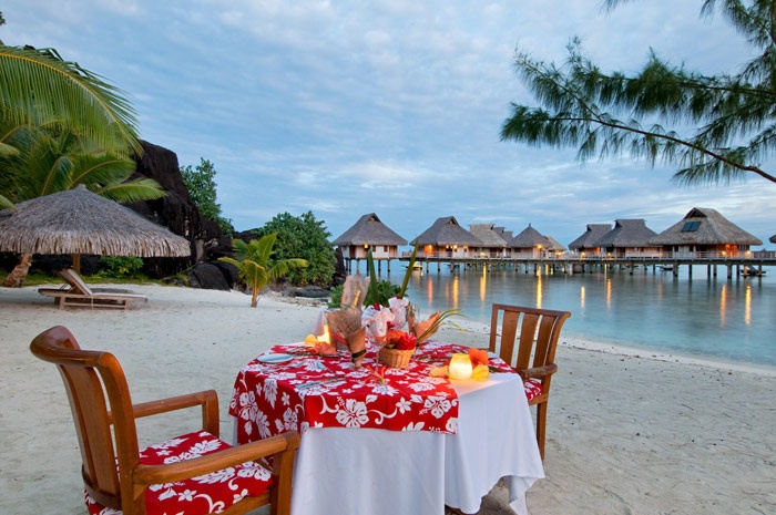 на частном островке вулканического происхождения, на юго-востоке от Бора Бора (Bora Bora), в 10 км от местного аэропорта Моту Мути (Motu Mute), в 45 мин. полета от международного аэропорта Papeete.