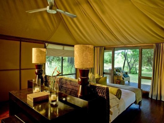 Интерьеры палаток не выделяются роскошью, они предназначены для сафари и полевого образа жизни, однако удобны и прекрасно оборудованы. В каждом тенте есть собственная открытая терраса с дощатым полом, откуда открывается прекрасный вид на окружающие ландшафты, спальня с большой двуспальной кроватью с сеткой, гостиная имеет вид на реку Тимбавати, мини-бар, вентилятор, одеяла с электроподогревом, душ на открытом воздухе, ванная комната с ванной, две раковины и отдельный туалет. Вокруг раскинули кровли экзотические деревья, ветви которых склоняются прямо на веранды тентов.