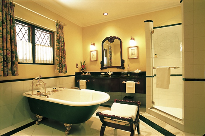 ванная комната с ванной в викторианском стиле и душевой кабиной