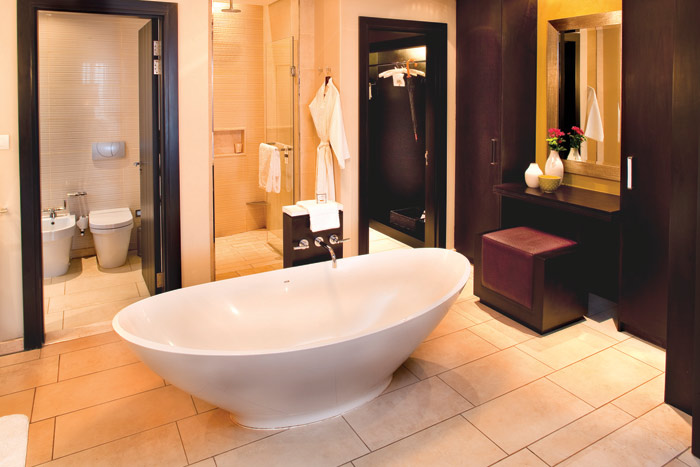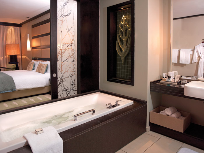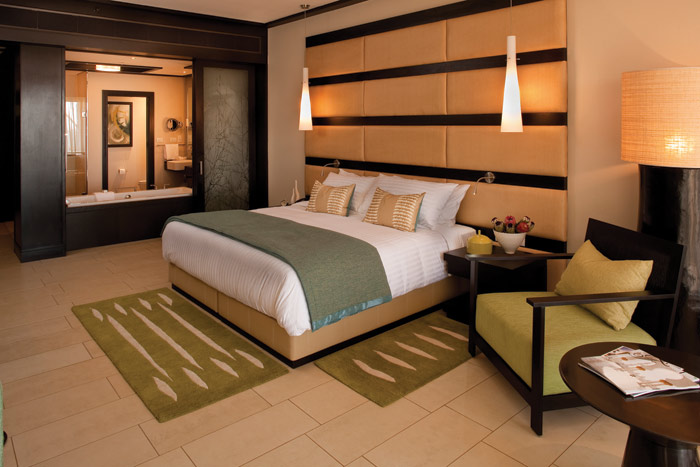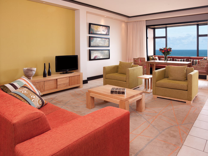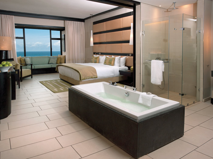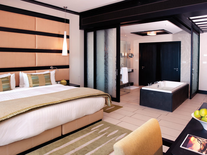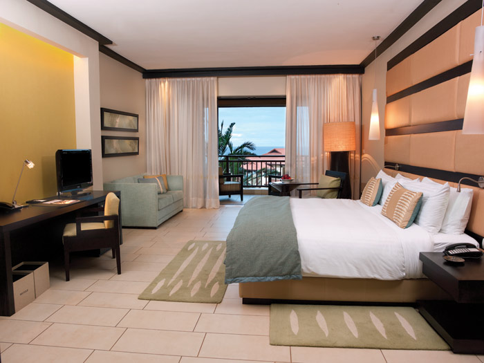 Junior Suite (49 кв.м) - номер с видом на океан, на сады и на главный бассейн. Состоит из спальни с кроватью King bed, с гостиной зоной, с рабочим столом; ванной комнаты, отделяемой от спальни матовыми стеклянными раздвижными дверями, в ванной комнате - большая ванна, душевая кабина, умывальник, отдельный туалет с биде. Имеется кухонный уголок с небольшой раковиной, микроволновой печью и холодильником.