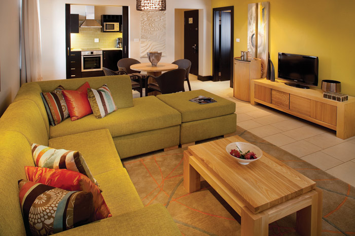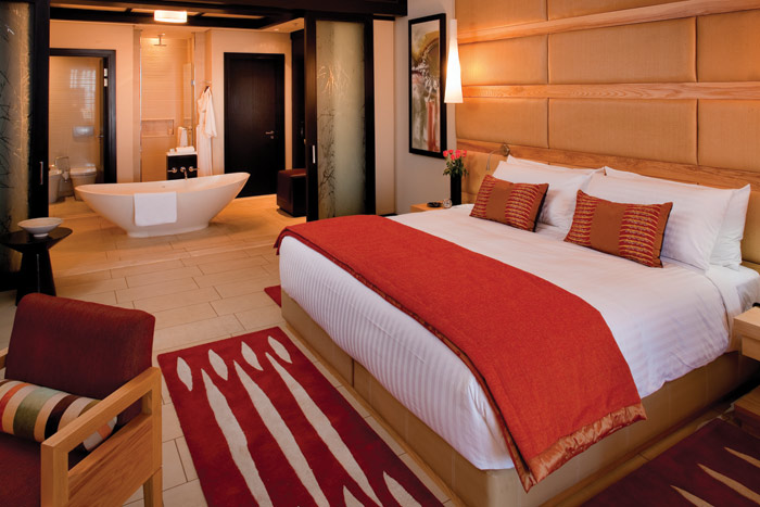 Deluxe One Bedroom Suite (88 кв.м) - номер с видом на океан, на сады и на главный бассейн, имеет большой внутренний дворик (патио). Состоит из спальни с кроватью King bed, гардеробной, гостиной с большим раскладным диваном, со столовой зоной, полностью оборудованной кухни, ванной комнаты, отделяемой от спальни матовыми стеклянными раздвижными дверями, в ванной комнате - большая ванна, душевая кабина, умывальник, отдельный туалет с биде.