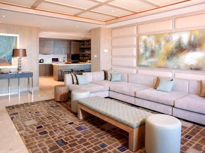 Sea View Suite (91 кв.м) - номер с видом на океан, на сады и на главный бассейн, имеет большой внутренний дворик (патио). Состоит из спальни с кроватью King bed, гардеробной, гостиной с большим раскладным диваном, со столовой зоной, с барной стойкой и кофе-машиной Nespresso; ванной комнаты, отделяемой от спальни матовыми стеклянными раздвижными дверями, в ванной комнате - большая ванна, душевая кабина, умывальник, отдельный туалет с биде.