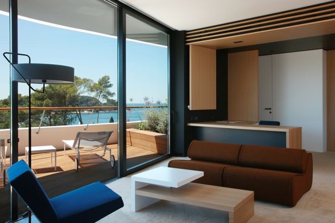 • Gallery Suite (52-57 кв. м) - балкон с видом на море и залив. Номер состоит из гостиной, спальни с очень большой двуспальной кроватью, ванной и дополнительного туалета. Дополнительно - электронный сейф в номере, два телевизора с ЖК-мониторами. В ванной комнате - ванна, душ с эффектом "тропического дождя", фен, стойка для полотенец, зеркало, полы с подогревом. Стеклянная дверь разделяет ванную и зону гостиной. Номер может быть соединен с одноместным номером и заказан как номер с двумя спальнями. По прибытии - вода в бутылках, свежие фрукты, печенье, бутылка оливкового масла (0, 25 л) + 1 бутылка вина и букет цветов. Запасы воды и фруктов пополняются ежедневно.