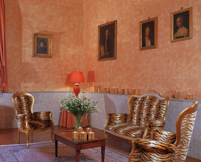 Интерьеры номеров уникальны и воссоздают неповторимую атмосферу, царившую во дворце несколько веков назад. Здесь тщательно сохранена и подобрана каждая деталь - от изумительных фресок, настенной росписи и искусной лепнины до изящной антикварной мебели с позолотой, пышных тканей, люстр из муранского стекла и старинных произведений искусства.