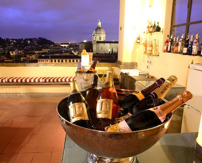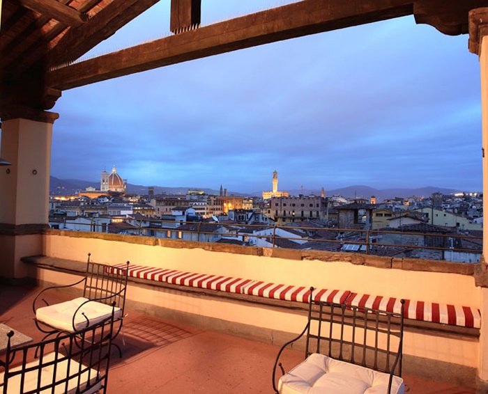 Дворцовое великолепие присутствует везде: в галереях и зале для завтраков, украшенных антикварными люстрами из муранского стекла; в фойе с арками, нишами и старинными скульптурами; в изысканных номерах с потолочной росписью, лепниной, антикварной мебелью и подлинными живописными шедеврами. В бильярдной комнате полы выложены старинной глиняной плиткой, а фитнес-зал имеет сводчатые потолки. Венчает этот экскурс в минувшие века очаровательная терраса на крыше отеля, откуда открывается захватывающий панорамный вид на исторический центр и крыши Флоренции.