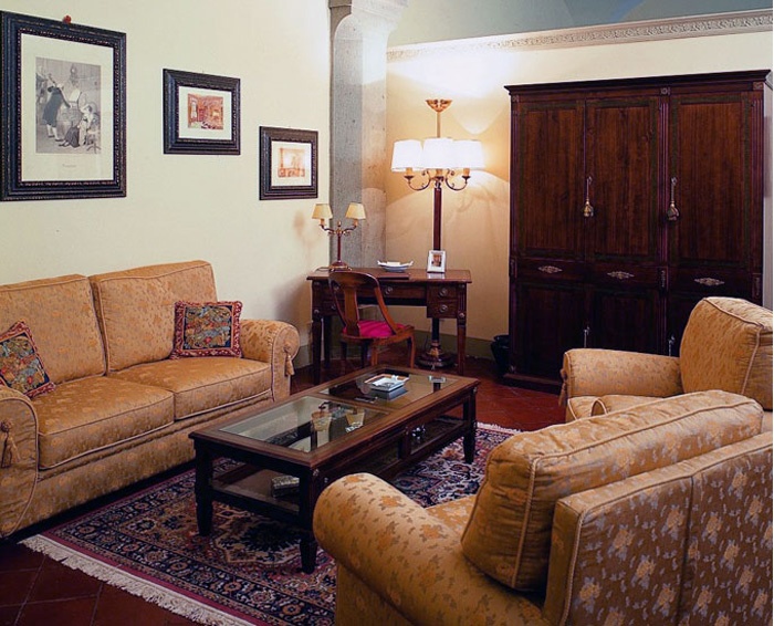 Junior Suite (75 кв.м.) - номер, оформленный в классическом флорентийском стиле, находится на 1 этаже, украшен изумительными фресками, состоит из спальни с двуспальной кроватью, гостиной с угловым диваном, мини-бара с большим выбором закусок, ванной комнаты с душем, небольшого патио с креслами и столиком. В номер ежедневно бесплатно доставляются газеты и журналы.