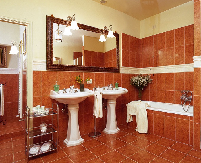 ванная комната из мрамора с ванной и душем или душевой кабиной