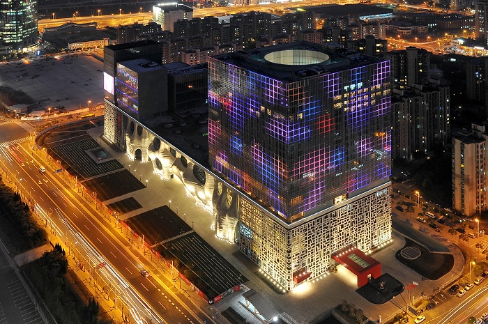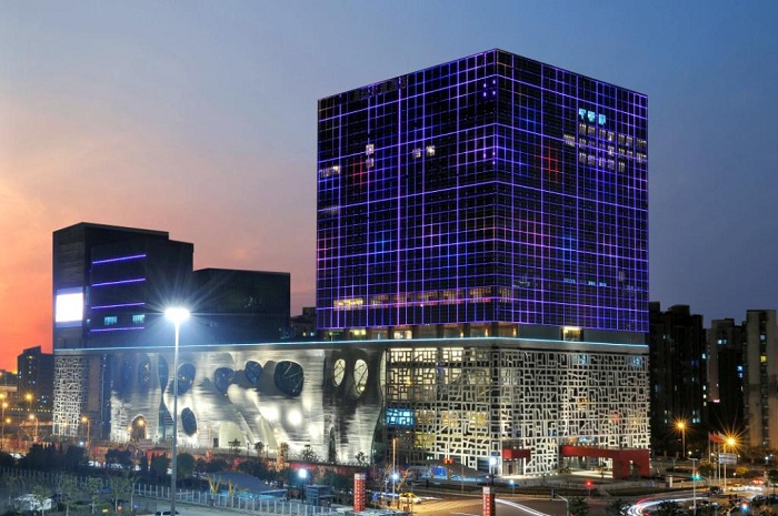 в самом центре шанхайского района Пудун, напротив Шанхайского международного выставочного центра (SNIEC), вблизи крупного зеленого массива Century Park ("Парк века"), рядом с аэроэкспрессом Maglev, в 35 км от международного аэропорта Pudong.