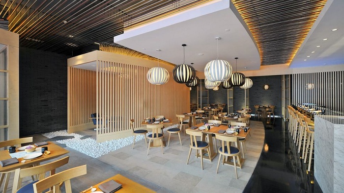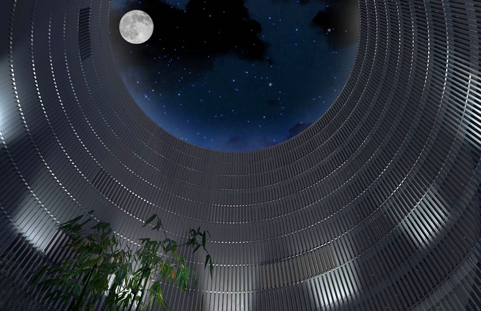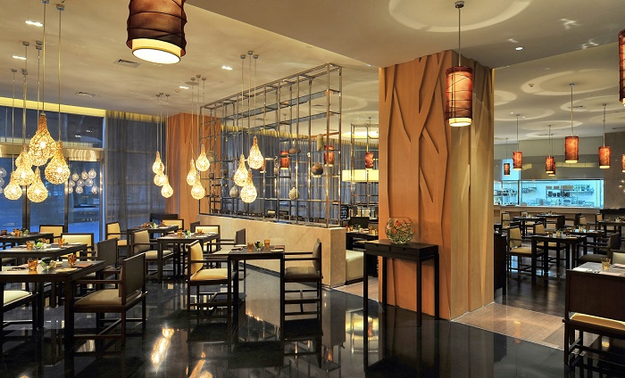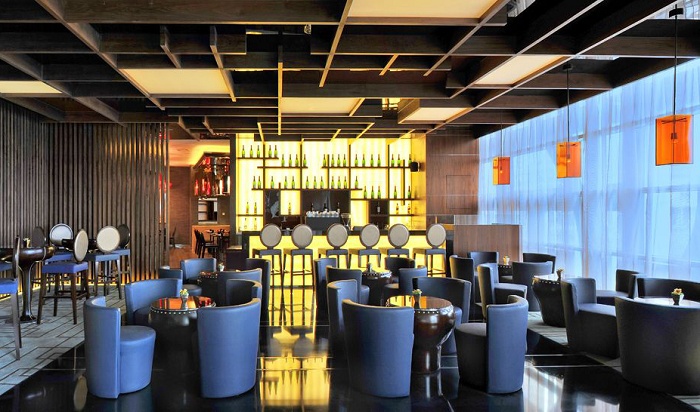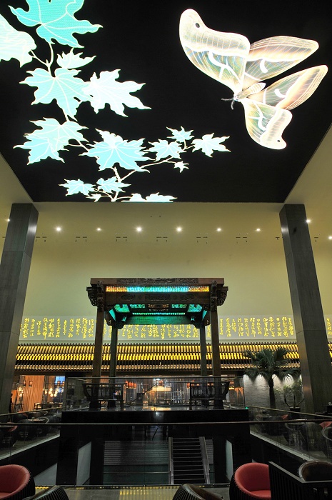 Над созданием роскошных интерьеров отеля работали дизайнеры известной компании KCA International, которая прославилась благодаря своему предыдущему проекту отеля-парусника в Дубае. Потолок лобби отеля представляет собой огромный светодиодный экран площадью 260 кв.м. – это крупнейший в Шанхае экран внутри помещения. Благодаря мультимедийной анимационной программе, цвета неба на экране сменяют друг друга в зависимости от времени суток, создавая удивительную атмосферу сразу же при входе в отель.
