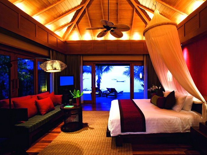 Номера отеля выполнены с изысканной роскошью, отделаны дорогими породами дерева, камня, великолепными шелковыми тканями и декорированы в традиционном тайском стиле.