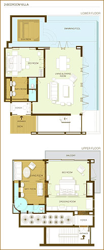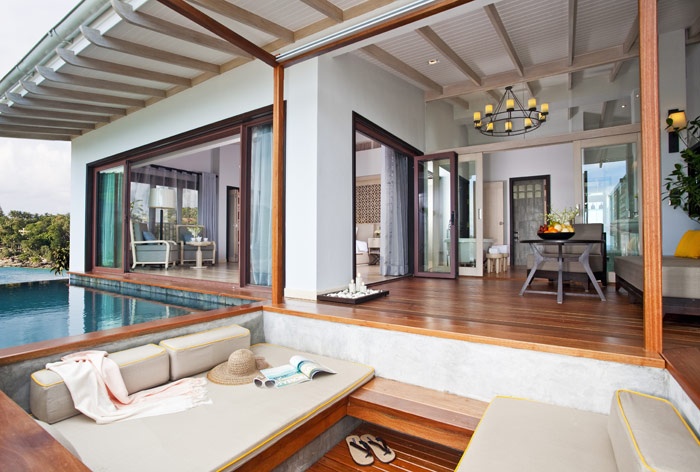 5 Two Bedroom Pool Villas (260 кв. м) – двухуровневая вилла. На 1-м этаже спальня, гостиная с обеденной зоной, бассейн, на 2-м этаже – спальня. Вид на море. Макс. размещение - 4 чел.