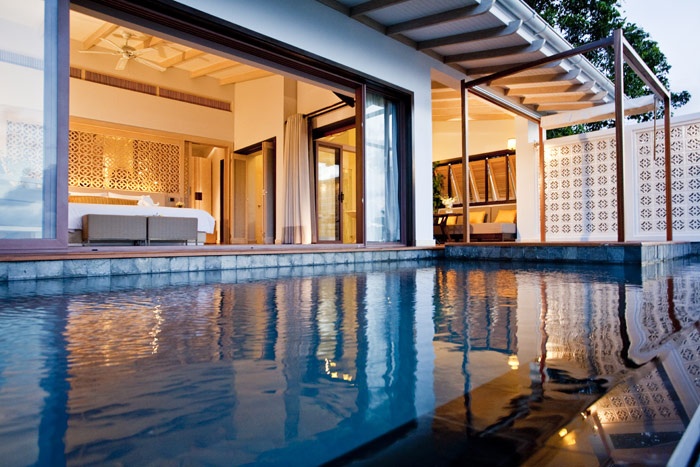 8 Pool Villas (130 кв. м) – состоит из спальни с дверью, гостиной, ванной комнаты, частного бассейна. Вид на сад.