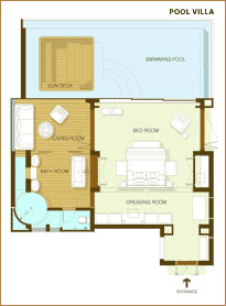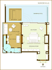 35 Seaview Pool Villas (130 кв. м) – состоит из спальни с дверью, гостиной, гардеробной, ванной комнаты, частного бассейна. Панорамный вид на море. Макс. размещение – 2 чел.