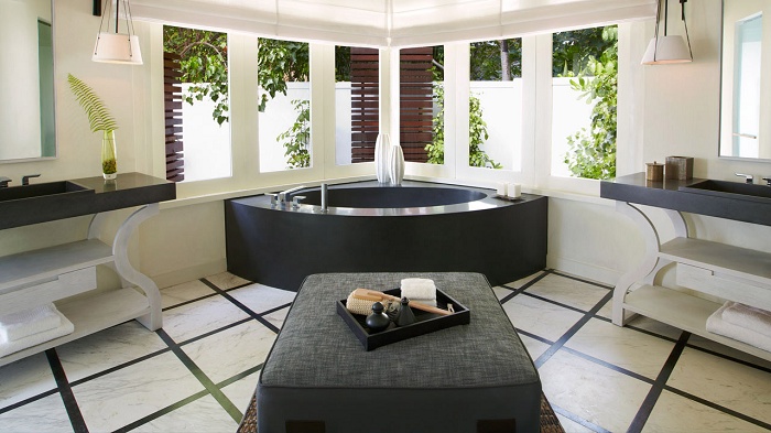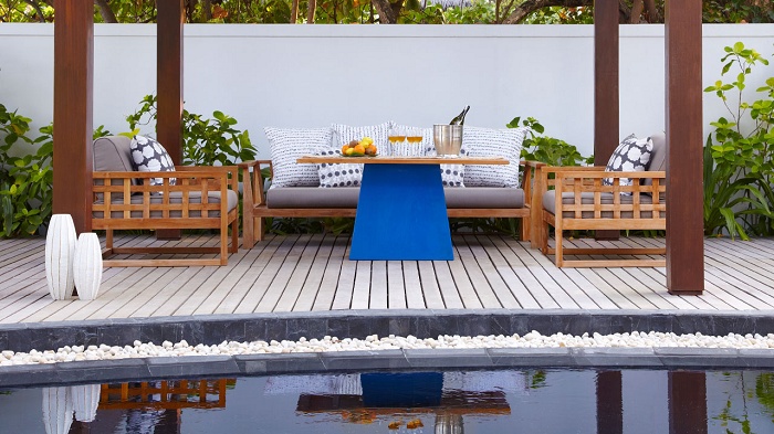 Water Villa with Pool (103 кв. м) – состоит из спальни, гостиной, ванной комнаты, террасы (115 кв. м) с персональным бассейном и зоной отдыха. Прямой спуск в воду. Вид на лагуну. Макс. размещение – 3 чел.