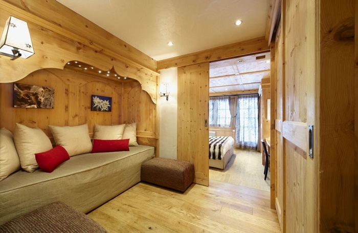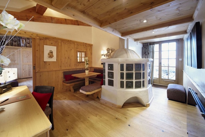 Номера восхищают элегантными и уютными интерьерами в альпийском стиле - с отделкой из натурального светлого дерева и изысканных тканей, тирольскими печками и восхитительными видами на величественные горные склоны.