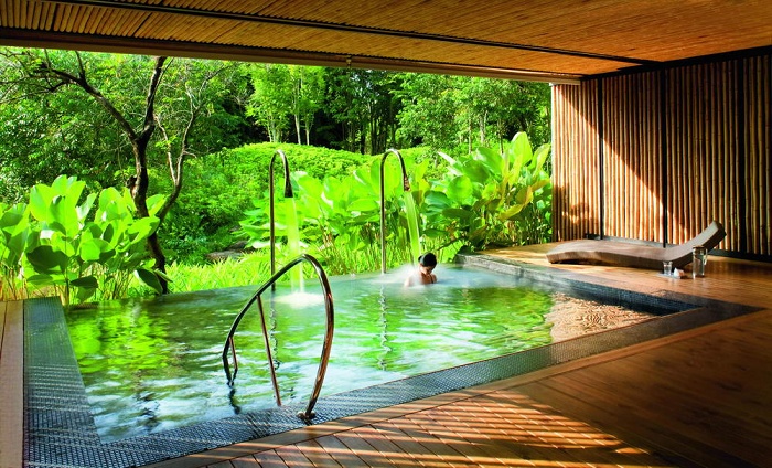 4 Reserve Pool Villas Sea View (106 кв. м + 246 кв. м – собственная площадь на открытом воздухе) – состоит из спальни с кроватью 2х4 м, гардеробной, ванной комнаты с ванной и "тропическим душем", террасы с шезлонгами, бассейна, сада. Вид на море. Макс.размещение – 3 чел.