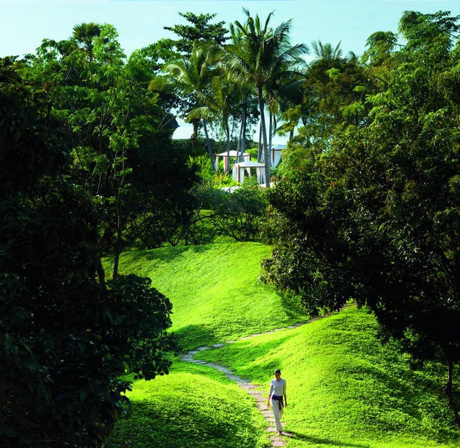 13 Resort Pavilions (84 кв. м + 95 кв. м – собственная площадь на открытом воздухе) – состоит из спальни с кроватью 2х4 м, гостиной зоны, гардеробной, ванной комнаты с ванной и "тропическим душем", окруженной панорамными окнами, или на открытом воздухе, меблированной террасы. Вид на сад. Макс. размещение – 3 чел.