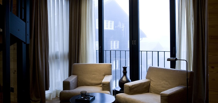 Double Room "Loft" (27 кв. м) - номера этой категории располагаются на 4-м этаже и приятно удивляют высокими потолками, большими окнами, камином, и потрясающим видом с небольшого балкона на курорт Церматт и горы.