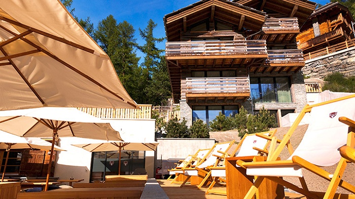 Cervo - небольшой, уютный бутик-отель, представляющий собой комплекс из пяти шале на горном склоне, спускающемся к центру знаменитого швейцарского курорта, рядом с лыжными трассами, подъемником и чудесным хвойным лесом. Облик отеля Cervo, название которого переводится с итальянского как "Олень", представляет оригинальное сочетание старинного охотничьего домика и стильного современного дизайна. Особый уют лаконичным интерьерам придает тепло соснового дерева, шерстяные ткани, живой огонь в каминах, и, кончено, очаровательные балконы и террасы с захватывающими видами на горные ландшафты и величественный пик Маттерхорн.