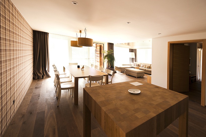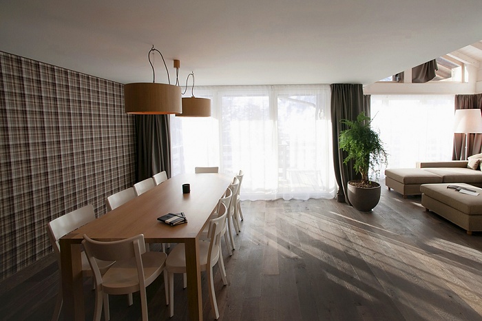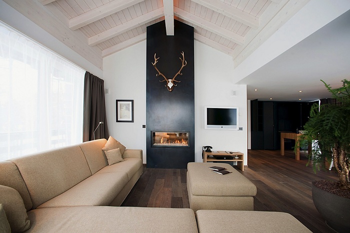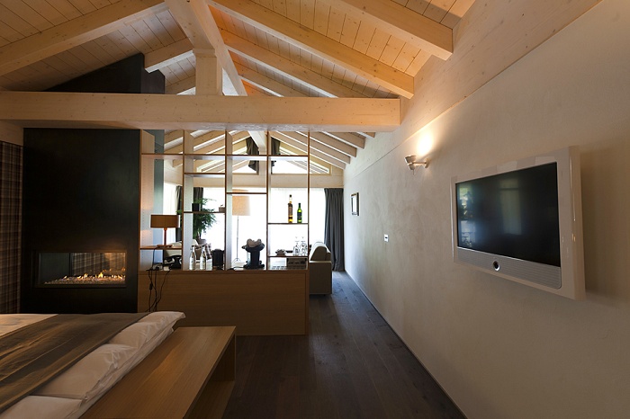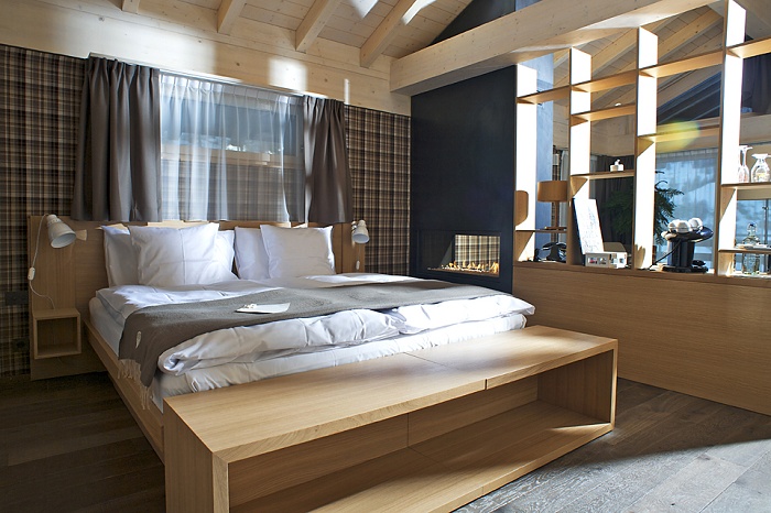 Master Suite (82 кв. м) - состоит из спальни с кроватью king-size или двумя двойными кроватями, гостиной с камином и диваном, который может служить дополнительным спальным местом, столовой зоны с мини-кухней, ванной комнаты с ванной и душем, балкона и террасы с видом на пик Маттерхорн.