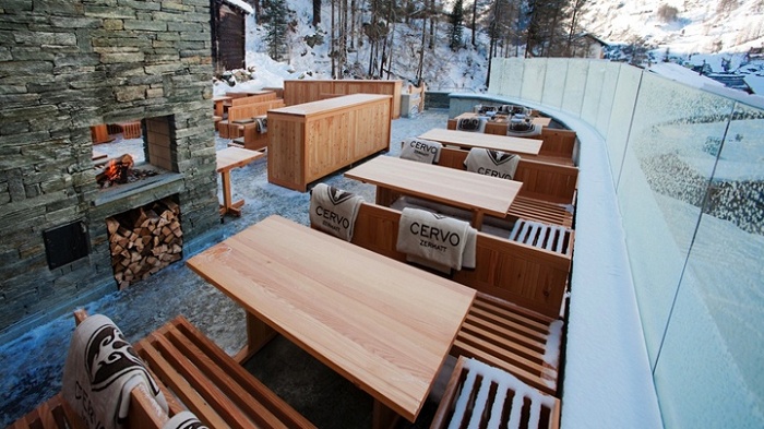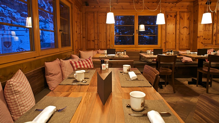 Владельцы Cervo Даниэль Лаубер (Daniel F. Lauber) и Серена Мюллер (Seraina Muller), воплощают в жизнь свою давнюю мечту об отеле-бутике с собственным рестораном. По затее хозяйки, по вечерам все гости собираются за общим столом, где в ожидании ужина коротают время за легкими закусками и бокалом прекрасного вина. Завтрак по желанию клиентов сервируется на балконе гостевого номера или на большой солнечной палубе. Гостям остается только решить, в какой обстановке они хотят принимать пищу - спортивной или элегантной, в лыжных ботинках или кроссовках.