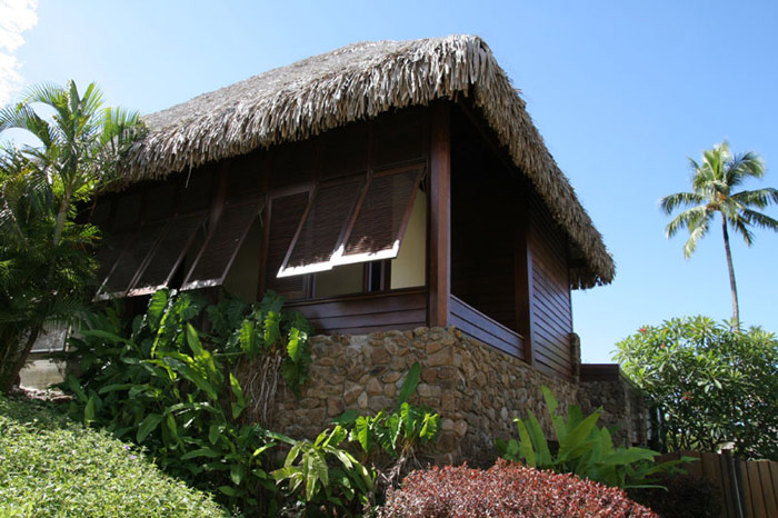на песчаном пляже острова Муреа в 2 милях от бухты Кука, в 5 минутах езды от аэропорта и в 10 минутах от морского порта.