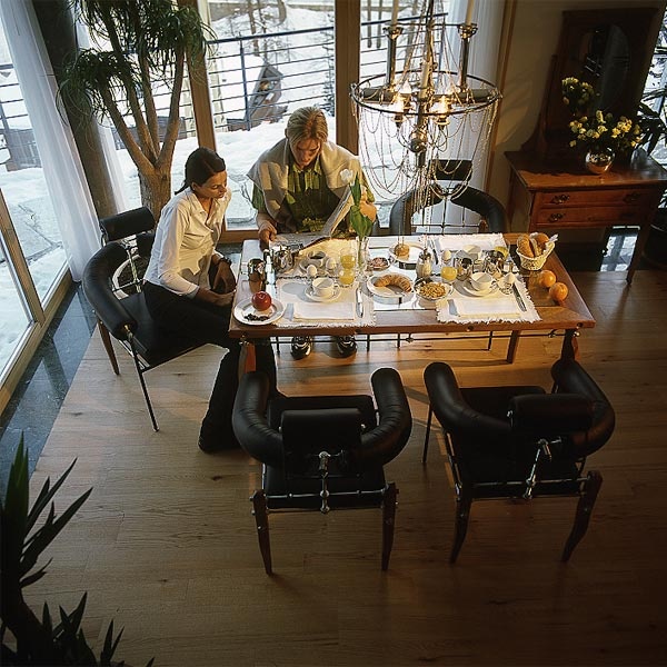 Номера отделаны натуральным деревом и отличаются изысканным современным декором и оригинальным дизайном, из всех номеров открывается великолепный панорамный вид на горы и вершину Маттерхорн. Есть сообщающиеся комнаты.