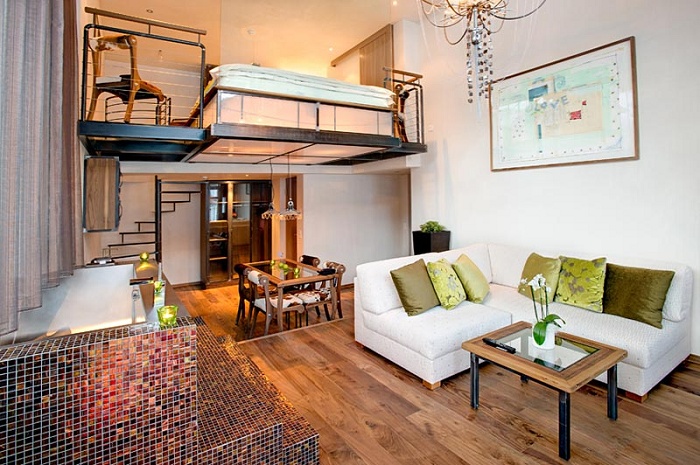 Sky Apartment - шикарный двухуровневый номер с панорамными, во всю стену окнами, расположен на последнем этаже, включает гостиную с камином, обеденную зону, кухню, спальню с душем открытого плана, ванную комнату, террасу. Максимальное размещение - 4 -6 человек.