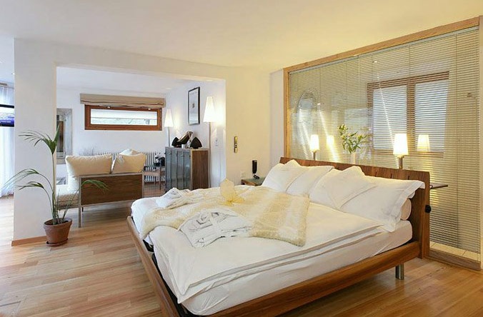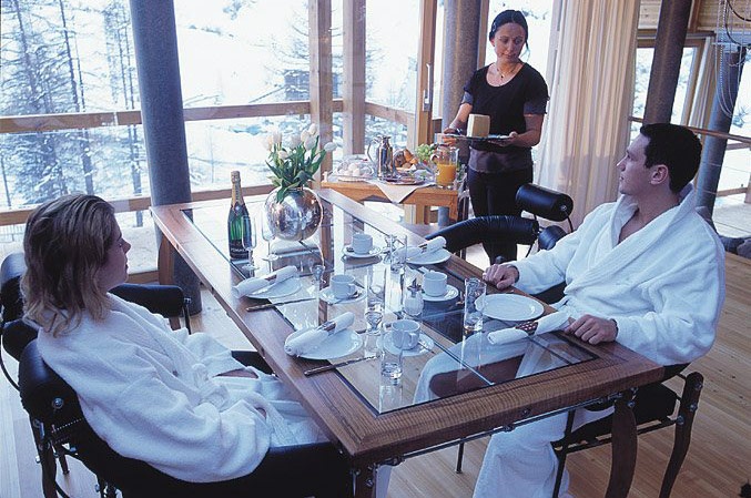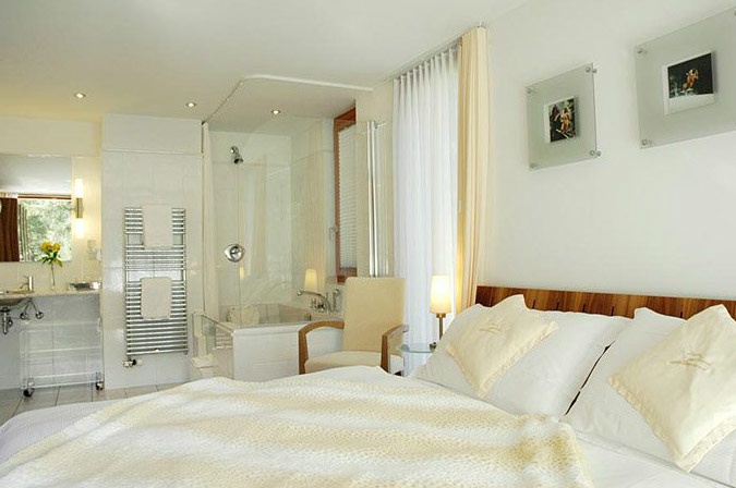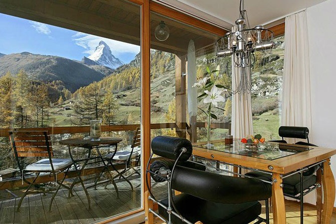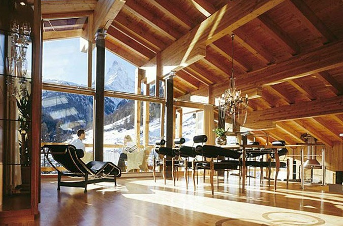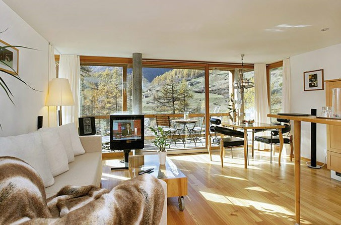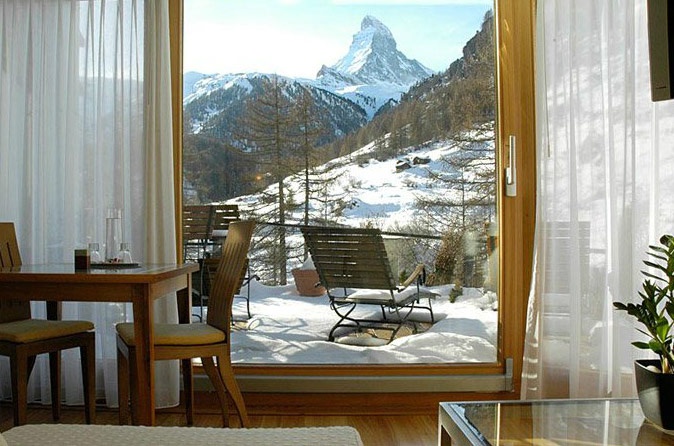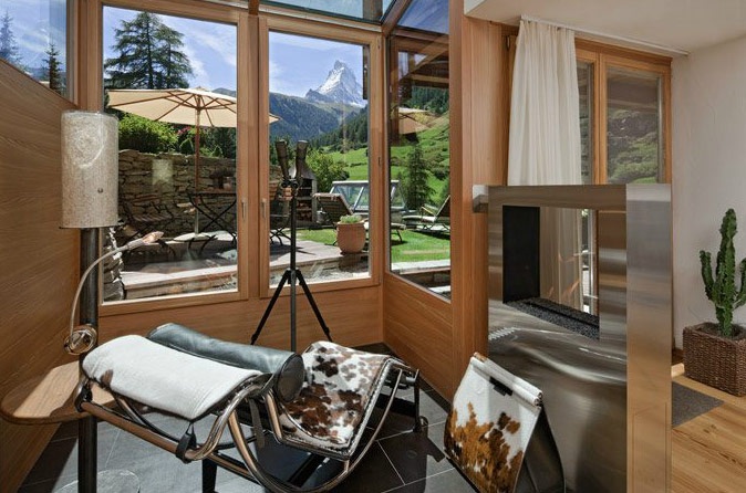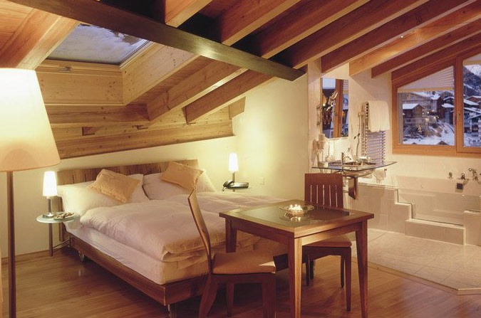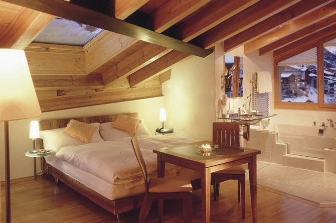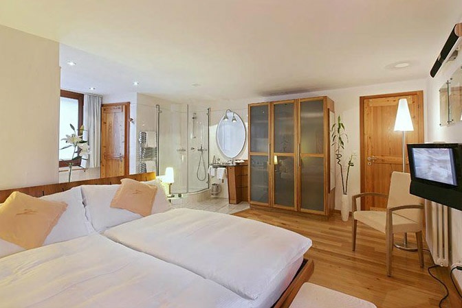 Просторные, залитые натуральным светом номера выполнены в современном дизайнерском стиле, обставлены элегантной мебелью, выдержаны в светлых тонах и отделаны натуральной светлой лиственницей. Из панорамных, во всю стену окон и с балконов, выходящих на южную сторону, открывается дивный вид на живописные альпийские склоны и величественный пик Маттерхорн.