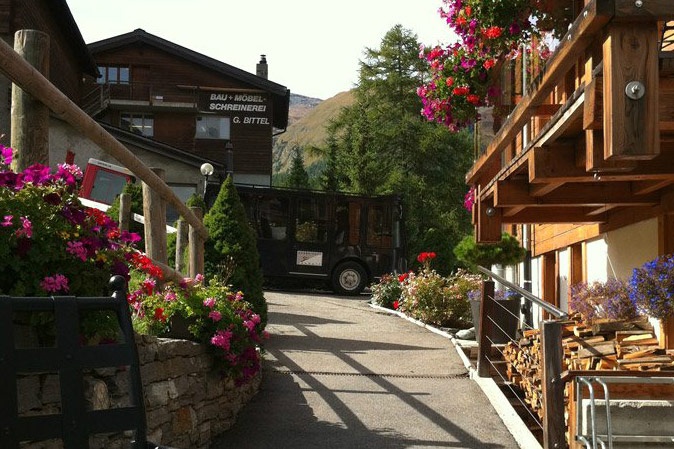 в 10 минутах ходьбы от центра Церматта, рядом с подъемником Klein Matterhorn, в 4 часах от международного аэропорта Цюриха и в 5 км от ж/д станции Taesch.