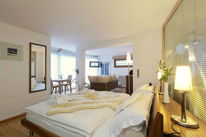 Appartement Lauberhorn/Stelvio (57 кв. м) - состоит из спальни, гостиной зоны с кухней, ванной комнаты, балкона. Максимальное размещение – 2 человека.