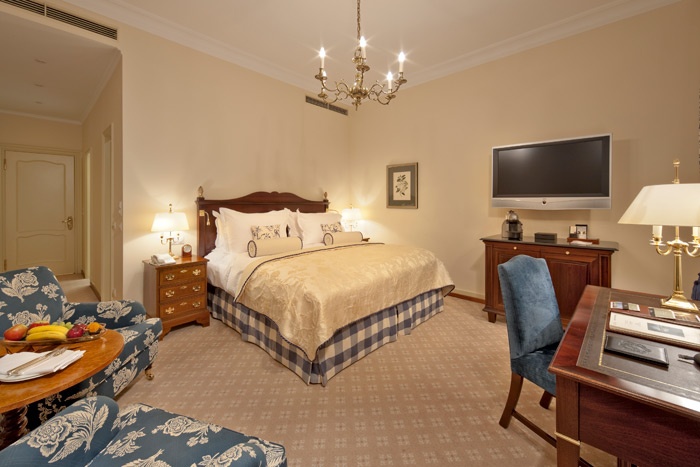 Courtyard Suite (80 кв.м.) - номер состоит из спальни с кроватью king size, элегантной гостиной с камином, просторной ванной комнаты с ванной и отдельной душевой кабиной, 2-х умывальников, биде и полом с подогревом, гардеробной, балкона с роскошным видом на тихий внутренний двор.