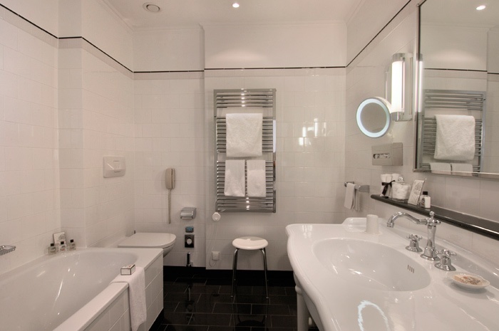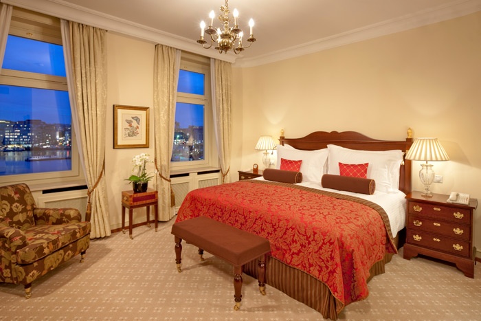 Lake Front Suite (75 кв.м.) - номер состоит из спальни с кроватью king size, гостиной с декоративным каминов, ванной комнаты с ванной и отдельной душевой кабиной, 2-х умывальников, биде и полом с подогревом. Захватывающий вид на озеро Альстер.