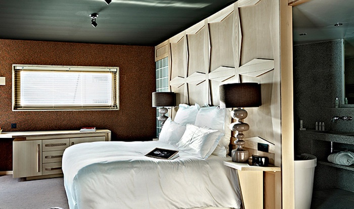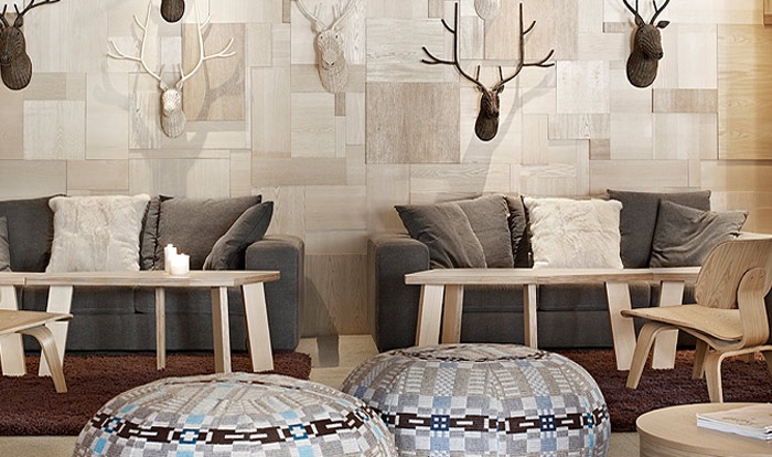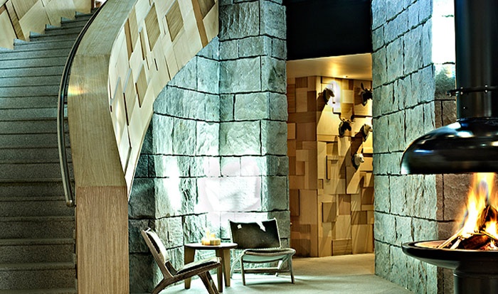 Удачно идущий в ногу с современной эпохой, несмотря на незыблемость окружающей его природы, он украшен панелями солнечных элементов. Щедрые и элегантные объемы и пространство, напоминающие пестроту и щегольство больших дворцов. Нордическая атмосфера, благородство дерева и камня. Отель, таким образом, демонстрирует свой стиль, играя контрастами в динамичной, праздничной и уютной среде.