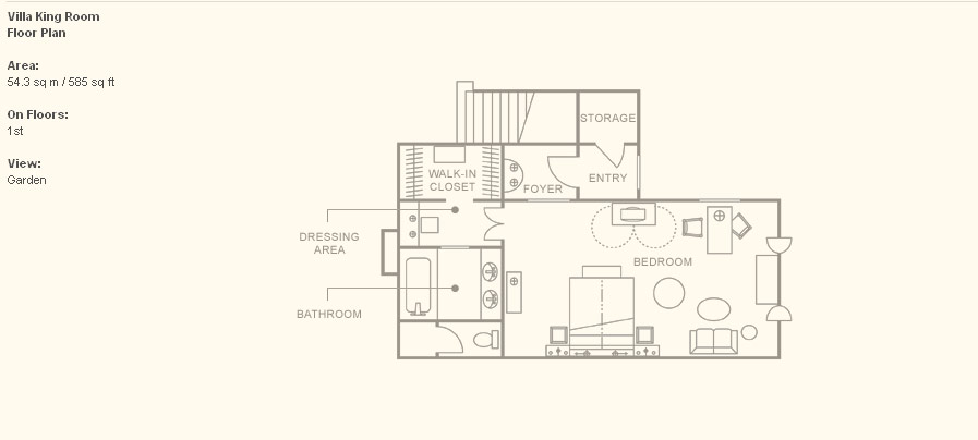 Villa King Room (54 кв. м) - расположены в отдельных бунгало среди тропических садов; состоят из спальни (кровать king-size) с камином, гардеробной, внутреннего дворика и ванной комнаты с ванной и душевой.