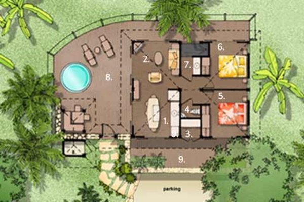 9 Tropical Villa NUI (180 кв. м) - состоит из 3-х спален, гостиной, оборудованной кухни с обеденной зоной, 2-х ванных комнат, просторной террасы с джакузи, сада. Панорамный вид на горы. Макс. размещение — 6 человек.