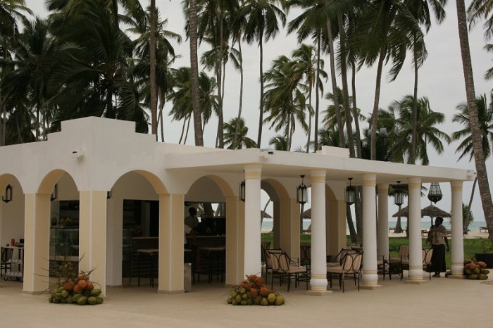 на восточном побережье Занзибара, непосредственно на пляже, в поселке Пвани Мачангани (Pwani Machangani), в 45 км от аэропорта.