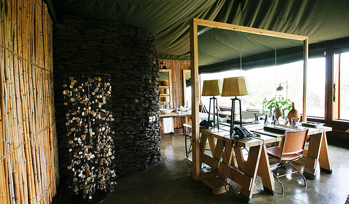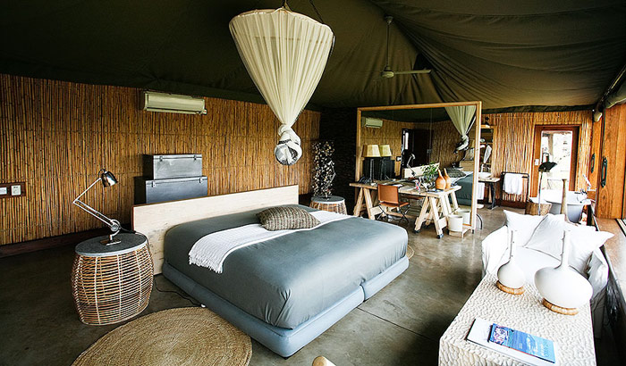 Отель располагает 9 номерами-тентами, интерьеры которых выполнены в стиле современного минимализма, дополненного африканской экзотикой: отделка из камня, дерева и бамбука, элегантная мебель, картины с изображением цветов на стенах, большие окна и уютные веранды с чудесным видом на ландшафты заповедника.