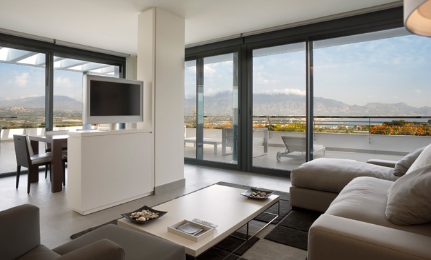 Grand Suite (120 кв. м) – состоит из 2-х спален, гостиной, гардеробной, полностью оборудованной кухни, 2-х ванных комнат с ванной или душевой кабиной, просторной террасы (джакузи по запросу). Панорамный вид на море или горы.