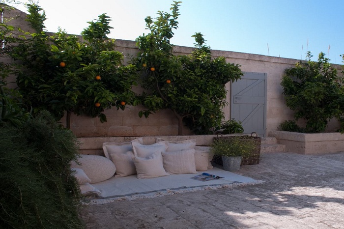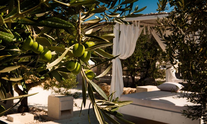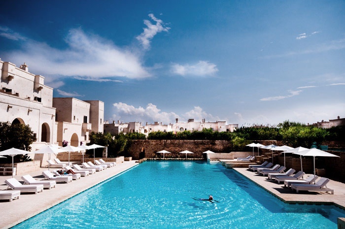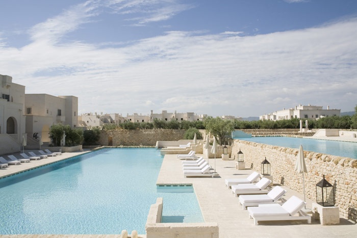 представляет собой дивный уголок, утопающий в красивейших зарослях бугенвиллеи, розмарина, жасмина и состоящий из основного здания La Corte, коттеджей в деревушке Borgo, имитирующей традиционную архитектуру апулийских городков, со своими узкими улочками, тупиками и уютными площадями и шикарных вилл с собственными бассейнами. Интерьеры номеров воссоздают уютный и изысканный стиль в традициях Апулии: белоснежные оттенки, изящная мебель, стены из местного камня и изделия местных мастеров. С балконов открываются изумительные виды на изумрудную зелень арабских садов, живописные холмы, бассейны и лазурное море.