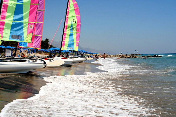 Akti Beach Club - отель-клуб, находится непосредственно на берегу. Отель был построен в 1997 г. и полностью обновлен в 2009 г. Состоит из основного здания и 13 коттеджей. Известен своей гостеприимностью и отличным сервисом.Расположение отеля Akti Beach Club:
